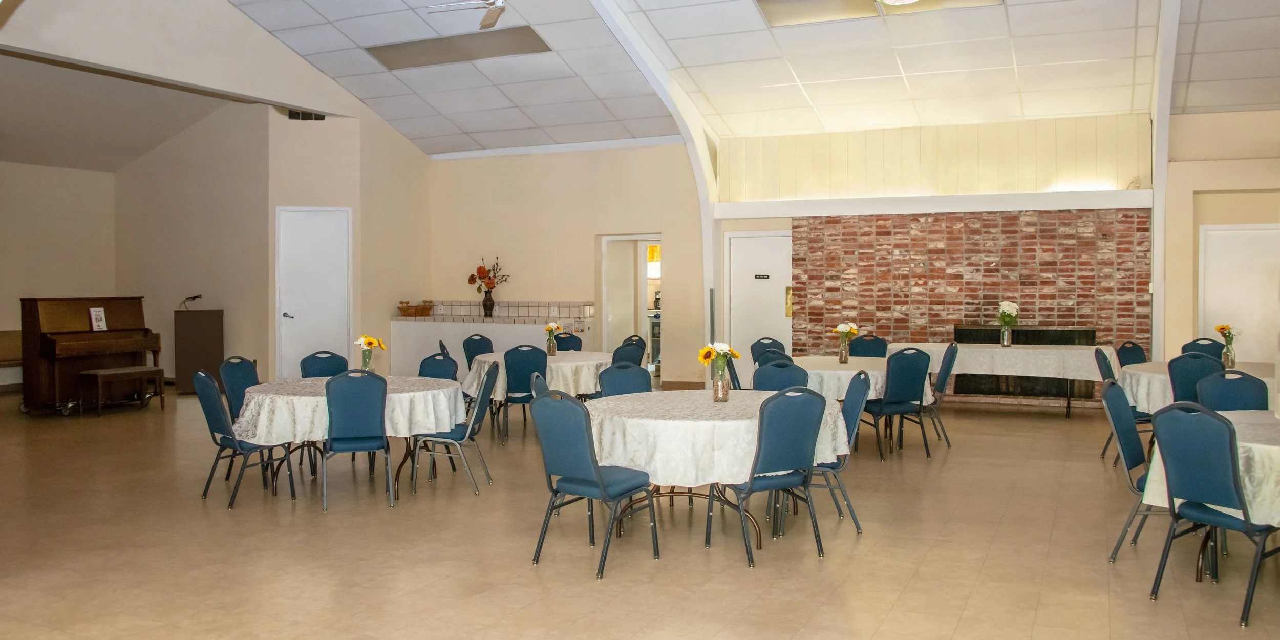 Also available on our campus is the Fellowship Hall, which can accommodate your reception with seating at table-clothed round and square tables and chairs, sound system, computer projector, and full kitchen facilities. Our outdoor patio is also available.